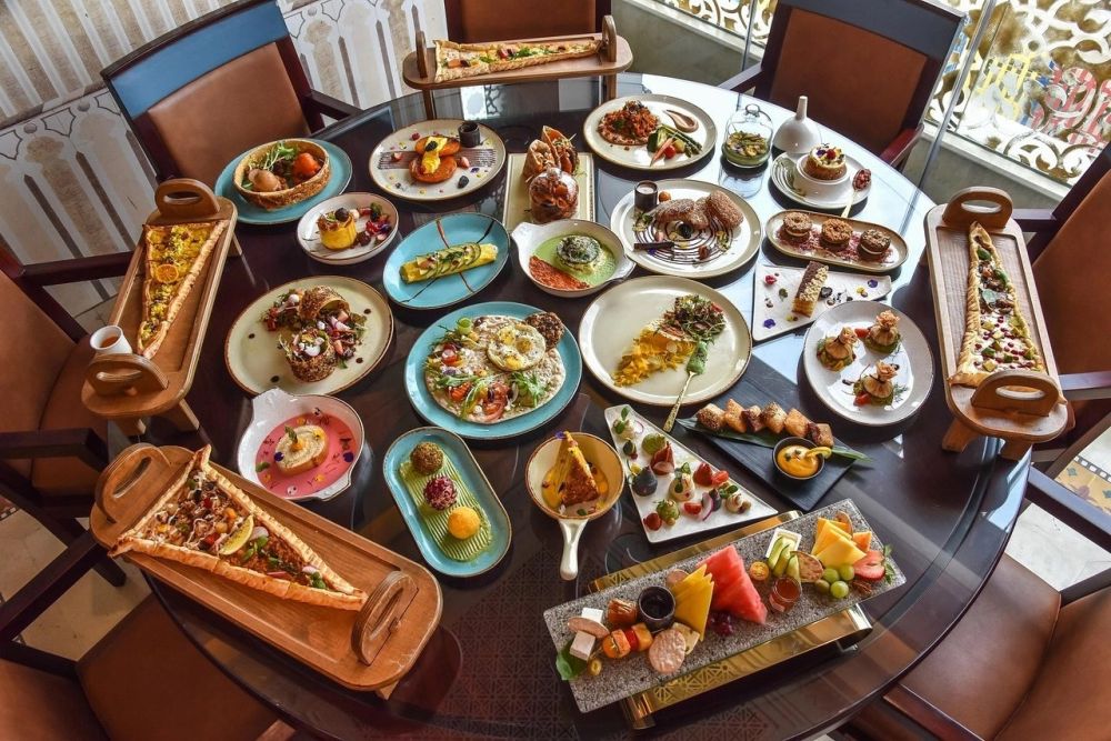 Mỗi set menu bao gồm nhiều món mezze (món khai vị) nóng và lạnh, trái cây, món tráng miệng. Bữa sáng đi kèm với trứng, phô mai, bánh manakesh. Bữa trưa và bữa tối sẽ có thịt gà xiên nướng và sườn cừu. Nhà hàng sẽ không nhận đặt chỗ trong suốt thời gian diễn ra giải đấu, du khách cần đến sớm để trải nghiệm các món ăn tươi mới và đầy hương vị tại đây.