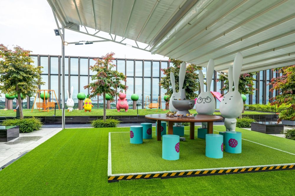 (Tu)gether hứa hẹn là tác phẩm nghệ thuật thu hút nhiều gia đình có con nhỏ. Tác phẩm nghệ thuật đa phương tiện này được đặt ở Trung tâm Singapore Chinese Cultural Centre (SCCC) đến hết 31/3. Đây là sự kết hợp của các tác phẩm sắp đặt ánh sáng, điêu khắc bơm hơi và những bức vẽ minh họa với kích cỡ lớn khắc họa rõ nét các nhân vật đáng yêu trong thần thoại và phong tục Trung Quốc. Tại đây, bạn sẽ thấy có 3 nhân vật chính là Tu Zai (con thỏ - biểu tượng cho sự trường thọ, bạn đồng hành của thần mặt trăng), Nian Mei (một con quái vật gắn liền với Tết Nguyên đán) và Ong Lai (trái dứa - tượng trưng cho may mắn dịp Tết).