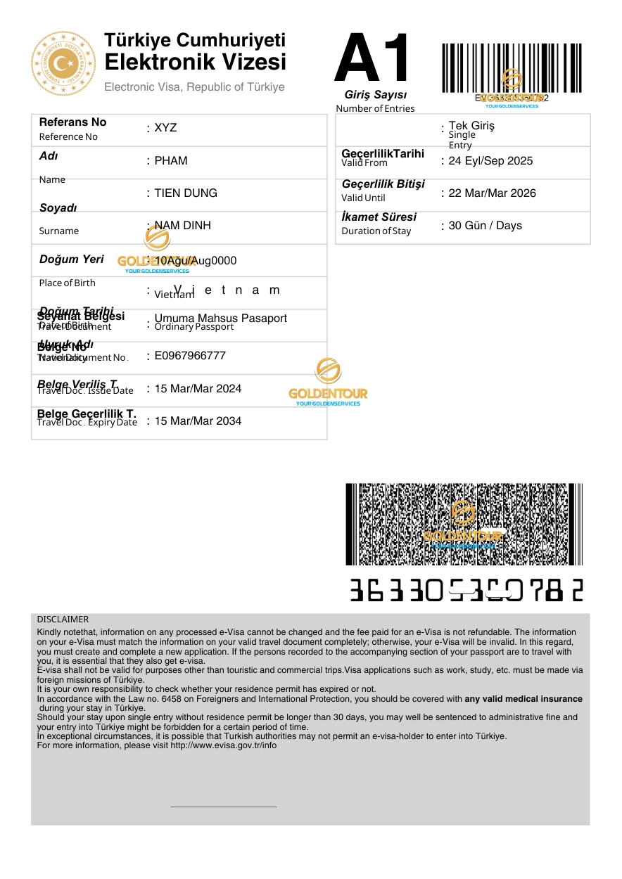 Đại sứ quán Thổ Nhĩ Kỳ tại Hà Nội cũng lưu ý những người nộp hồ sơ xin thị thực cần đảm bảo cung cấp chính xác mọi thông tin để việc xử lý được thuận lợi.