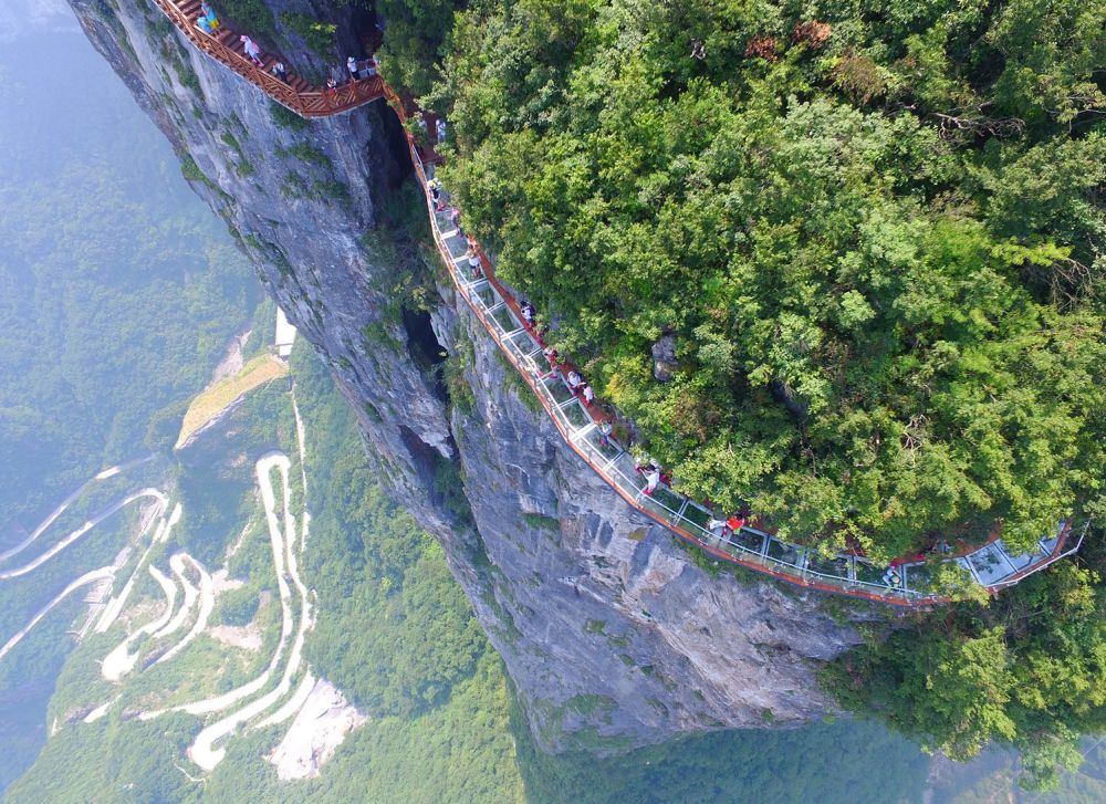 Đặc biệt, trên núi Thiên Môn Sơn còn gây ấn tượng với "con đường trong suốt" men theo vách núi dựng đứng, làm từ những tấm kính chịu lực chỉ dày hơn 6cm, trở thành một trong những điểm thu hút khách du lịch hấp dẫn nhất tại Trương Gia Giới.