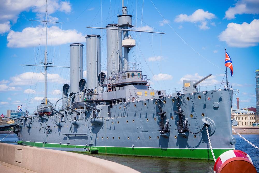 Chụp ảnh cùng Chiến hạm Rạng Đông huyền thoại (bên ngoài). là một tàu tuần dương - biểu tượng của cuộc Cách mạng Tháng Mười Nga. Nó nổ phát súng ra hiệu cho cuộc tấn công cuối cùng vào Cung điện Mùa Đông tại Petrograd (nay là Saint Petersburg) vào ngày 7 tháng 11 năm 1917. Ngày nay, nó được bảo tồn và hoạt động như một tàu bảo tàng tại Saint Petersburg.